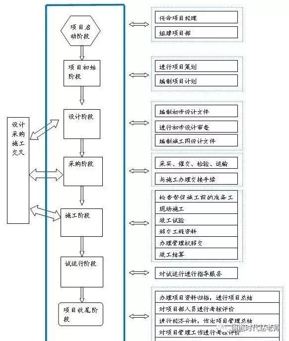 項(xiàng)目實(shí)施 | 檢查進(jìn)度和質(zhì)量,確保變更,評(píng)估其對(duì)工期和成本的影響,并根據(jù)合同進(jìn)行支付 | 施工圖和綜合詳圖設(shè)計(jì),設(shè)備材料采購(gòu)和施工隊(duì)伍的選擇、施工的進(jìn)度、質(zhì)量、安全管理等 |